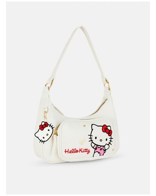Say hello to your new fave accessory! This super-cute Hello Kitty shoulder bag is perfect for adding a playful touch to any outfit. Designed in a chic white finish with gold-tone details, it features an adorable Hello Kitty print, a handy front pocket, and a matching charm for extra cuteness.