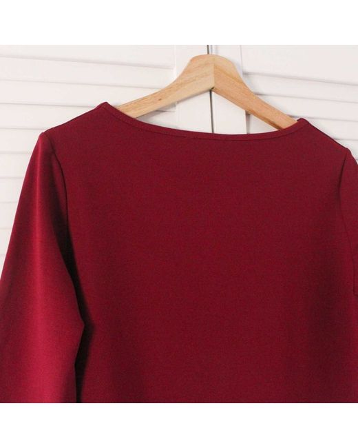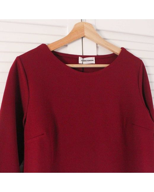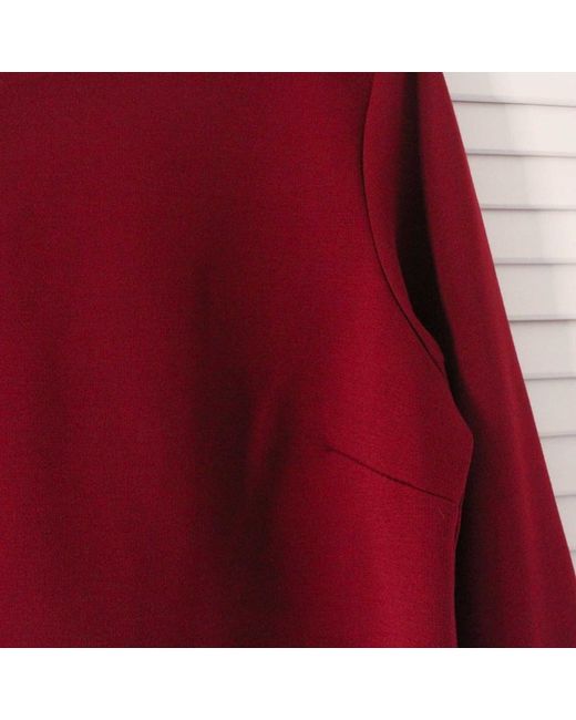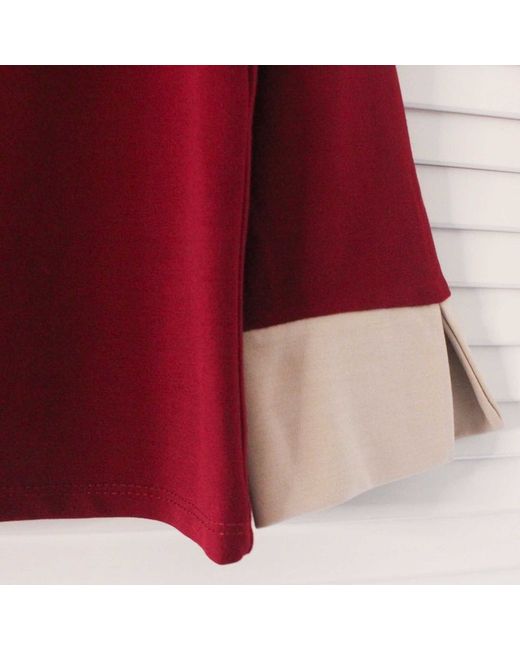 Sandro Ferrone deep red 3/4 sleeve boxy top with contrast cuffs. Thick jersey fabric with stretch. Machine washable. 60% viscose, 35% nylon, 5% elastane.