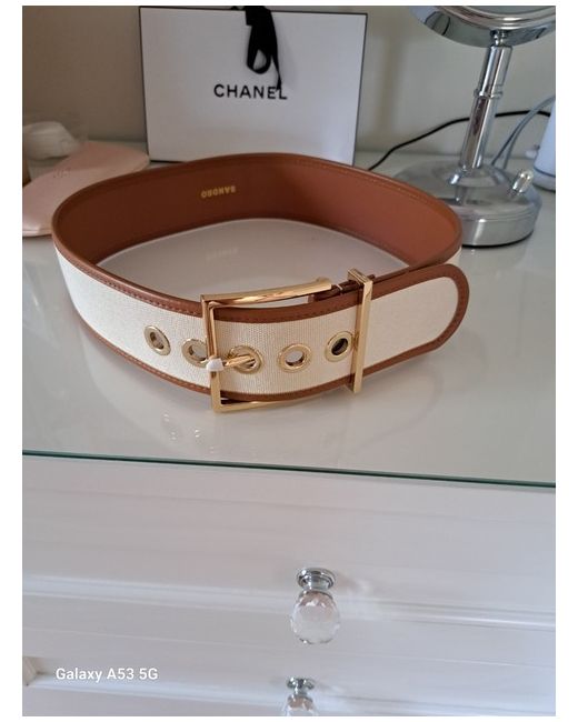 Elevate your wardrobe with this exclusive Sandro belt in cream and brown. Crafted with the finest quality, this belt is perfect for women who want to add a touch of sophistication to their outfits. The belt is available in size small and is designed to fit perfectly with your favourite jeans or dress pants. The Sandro brand is known for its high-quality fashion accessories, and this belt is no exception. It is perfect for any occasion, whether you're going to work or out for a night on the town. With its cream and brown colour combination, it will complement any outfit in your wardrobe. Add this Sandro belt to your collection today and take your style to the next level.