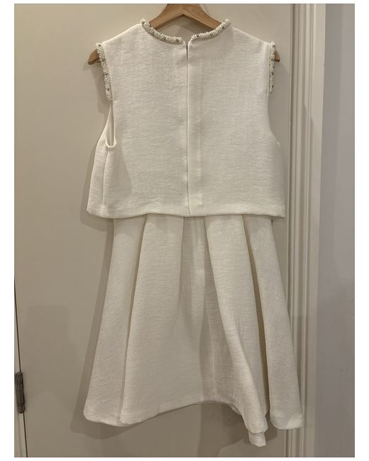 With a tiered bodice overlay, this bead-embellished Sandro dress has the look of elegant separates, while a pleated skirt and split back keep the silhouette squarely on trend. Bead-embellished round neck and armholes, sleeveless Tiered bodice overlay, allover texture, pleated A-line skirt Mini length, split back, concealed back-zip closure Size is 3=L Viscose/polyamide; contrast: polyester Dry clean New without tags!