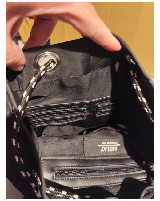 The BNWT Replay Medium Black Logo Flap-Over Backpack is a stylish and practical accessory for women. With a push lock and drawstring closure, this backpack is perfect for travel and casual occasions. Made from lightweight and water-repellent polyester material, it features adjustable straps, inner and outer pockets, inner card slots, and a carry handle for added convenience. The black exterior and logo accents, including a detachable 'Luggage-Style Logo Tag', give it a trendy and versatile look. With an RRP of £95, this backpack offers great value for its quality and style. thanks for looking