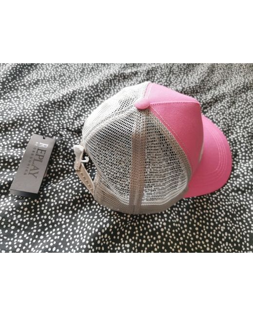 Replay Womens Pink Trucker Adjustable Snapback Mesh Net Cap Curved Baseball Hat.