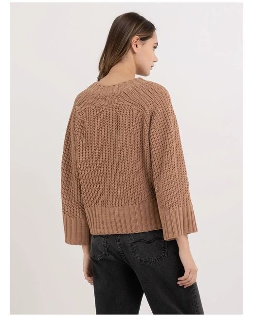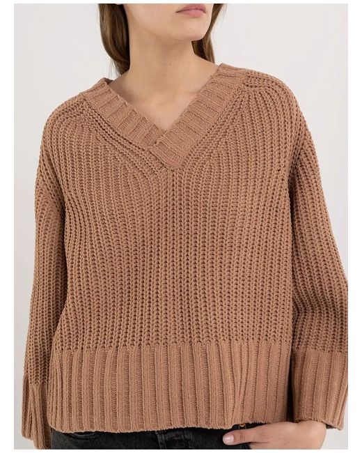 Cropped sweater made of chenille with weaved pattern. The item is refined by the V-neck and by the ribbed edges. Cropped Sweater in Chenille.