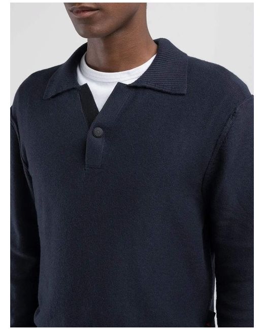 Replay UK4460 Collared Jumper Replay Collared Jumper Long-sleeved sweater in a soft and warm solid-coloured cotton blend. This regular-fit piece features a turtleneck with a single-button fastening and a fine-rib knit on the neck, cuffs and hem.