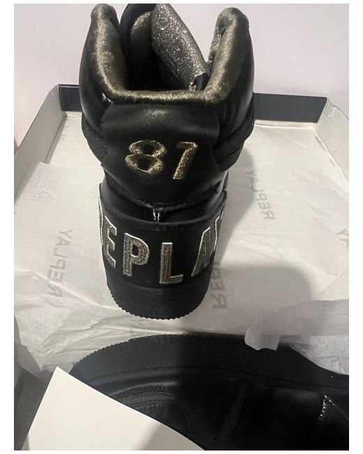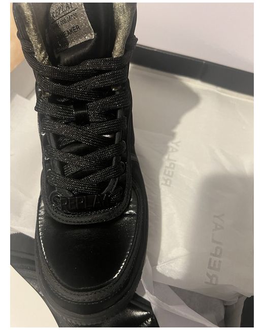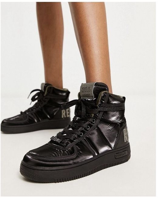 New kicks for your 'fit • High-top design • Lace-up fastening • Padded tongue and cuff • Signature Replay branding • Chunky sole • Textured grip tread Patent faux-leather upper Lining: 100% Polyester, Main: 100% Cotton, Elastic: 100% Elastic.