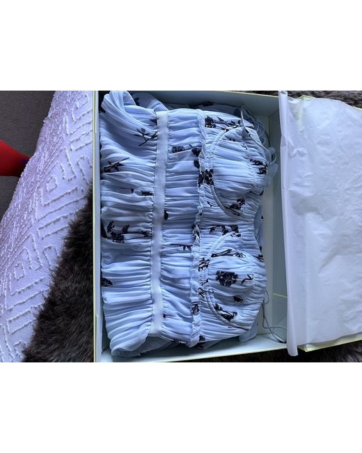 Self Portrait midi dress UK 8 - light blue floral silhouette chiffon tiered midi dress. Only worn for a few hours photo shoot. RRP £350.