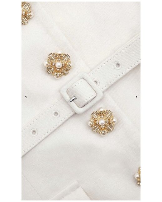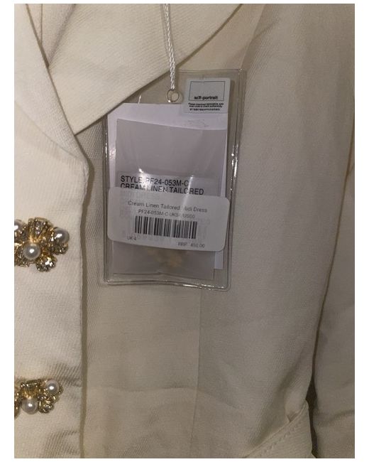 Self portrait brand new with tags Currently RRP £450 A timeless take on a house signature, this dress is cut from cream linen for a summer-ready finish. Gold, pearl & diamanté buttons add extra sparkle - ideal for work cocktails and garden parties. - Fitted style, take one size up if between sizes - This style has minimal stretch - Button closure down top - Zip closure at waist - Removable belt - Model is 5ft10/178cm and wears a UK 8