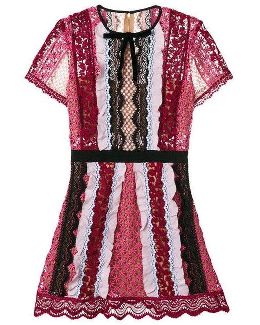 Women's Multicolor Bellis Lace Contrast-panel Mini Dress Pink Multi 6