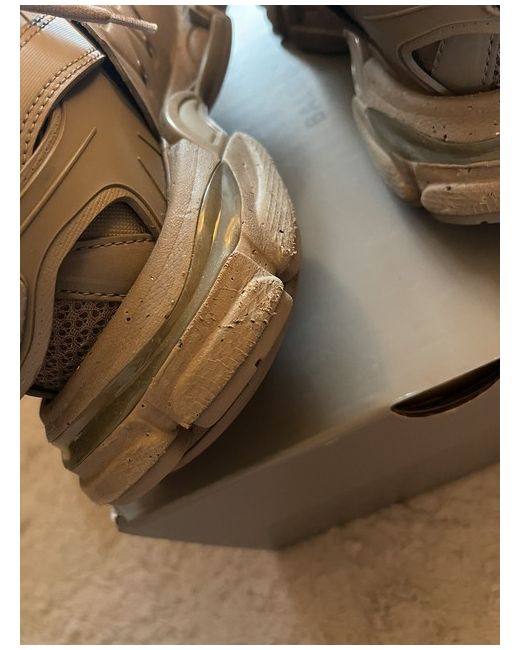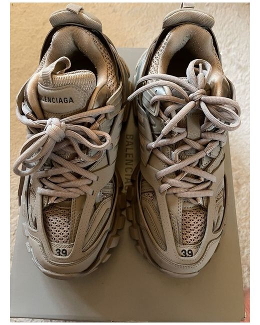 WOMEN'S TRACK TRAINERS RECYCLED SOLE IN BEIGE RRP: £825 Worn TWICE on holiday Size 39 EU • Leather free • Trainers • Recycled sole, mesh and nylon • Written size at the edge of the toe • Track embossed at the back of the heel • BB embossed on front of the outsole • Printed logo on the exterior • Embossed logo on the tongue • Double laces knotted in a usual equipment way • Back and tongue pull-on tab • Dynamic sole design with an augmented back for more comfort • 1 additional pair of laces included • Made in China • Wipe with a soft cloth