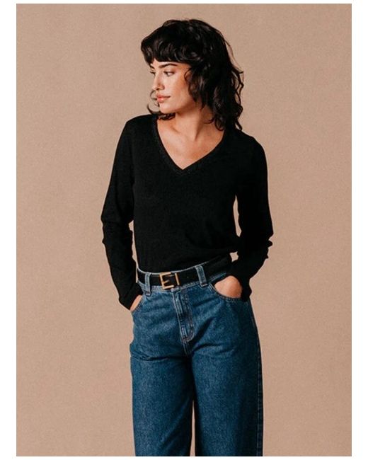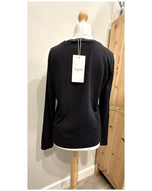 The Lewis top is a long sleeve, v neck t-shirt. The ribbed neckline features a lurex detail, to add a bit of sparkle to your outfits. 80% Cotton 20% Polyester Size Large/14, Pit to pit 20”