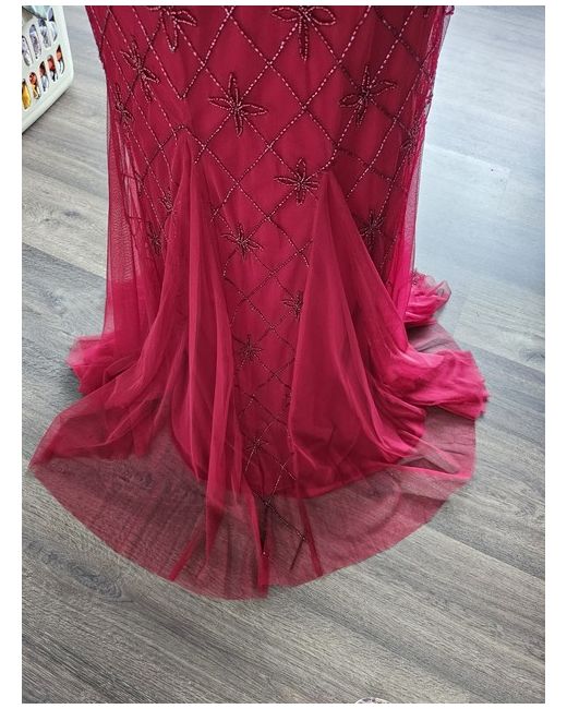 This stunning Adrianna Papell evening dress in a beautiful shade of red is perfect for any formal occasion. The dress features shoestring straps and a hi-low A-line style, with a lined interior for added comfort. The beaded and sequin accents add a touch of glamour to the dress, making it perfect for a wedding, party or cocktail event. The dress is available in a size 14 and is made of high-quality materials and is perfect for those who want to make a statement on their special day.