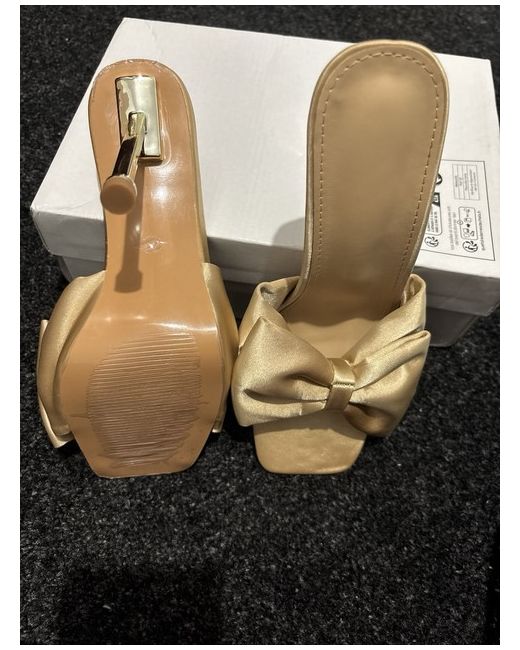 New without box, this pair of SHEIN heels is a UK size 7 with an open toe design. Made of 100% cotton in a stunning gold colour, these heels are suitable for various occasions including weddings, parties, and formal events. The court style and standard shoe width make them versatile for both casual and business attire.