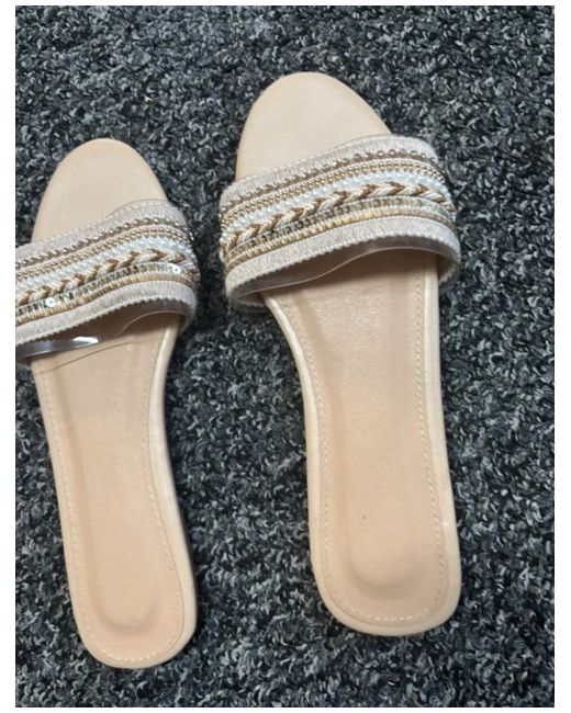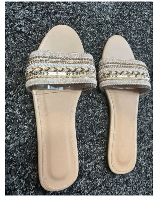 These beige SHEIN flat sandals are crafted with a plastic upper material and a leather insole for comfort. The outsole is made of rubber for durability. The sandals feature a low heel height of 2.5-4.9 cm, making them suitable for everyday wear. With a UK shoe size of 5, these women's flat sandals provide a stylish and practical option for any casual outfit.