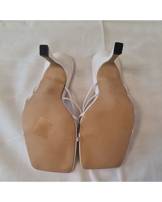 These are a pair of women's white strappy heels in size 3 by SHEIN. They are brand new and come in their original box. The upper material of the shoes is synthetic, making them a stylish and versatile choice for various outfits. With a sleek design and a comfortable heel height, these shoes are ideal for adding a touch of elegance to any outfit.