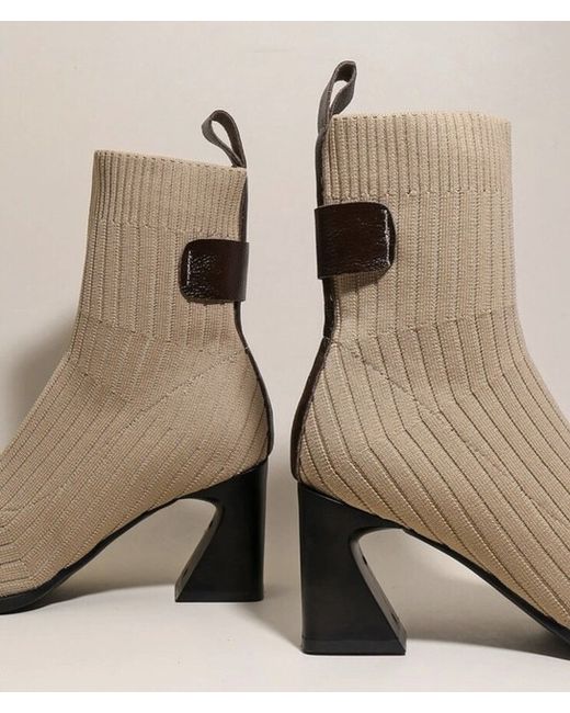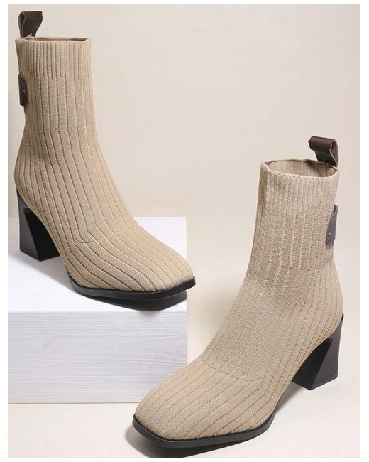 Square Toe Fabric Sock Heel Boots 39 6