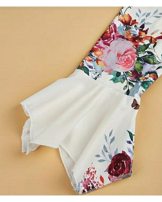 Floral Print Neck Button Dress, Elegant Half Flared Sleeve Dress For Spring & Summer, Women's Clothing available in S(8) L(12)(14)