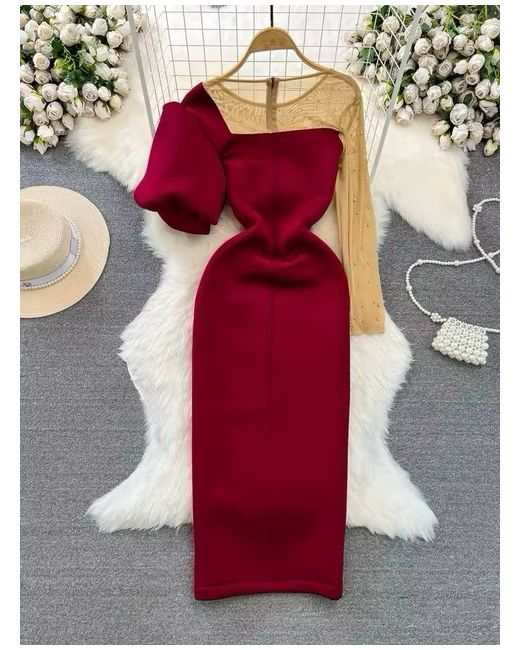 Mesh Chic Evening Vestidos Square Collar Puff Sleeve s Bnwt