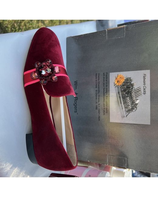 Elevate your footwear game with these stunning red loafers from Anya Hindmarch. Crafted from luxurious velvet, these heels are the perfect addition to any stylish woman's wardrobe. With a UK shoe size of 3, these loafers are designed to provide maximum comfort while making a bold fashion statement. The elegant design of these loafers features a classic loafer style, making them perfect for both casual and formal occasions. The beautiful red colour adds a pop of sophistication to any outfit, making them a must-have for any fashion-forward woman. Don't miss out on the opportunity to add these stunning heels to your collection.
