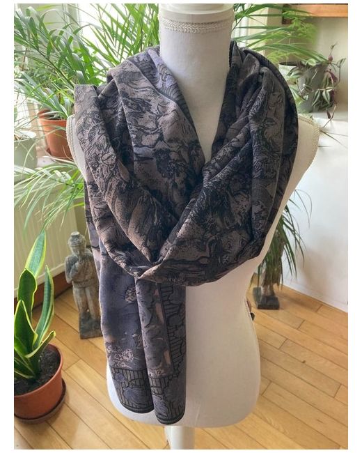 Women's Black ethnic rectangular flowered pattern shawl and neck wraps