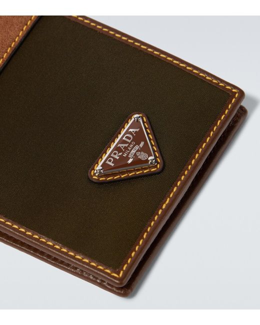 Material: leather, polyamide (recycled). Lining: leather. Made in Italy. Designer color name: Muschio+Cacao. Item color: brown, green. Internal details: Card slots, coin pocket, bill slots. Hardware color: silver.