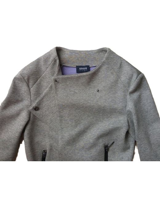This Armani Jeans blazer/jacket is a stylish addition to your wardrobe. Made from cotton with a viscose lining, it features a snap closure and two front pockets. The jacket has a grey colour with a zip and logo accent, and is a size 42IT/10UK.