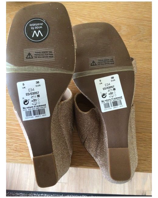 Elevate your style while keeping it comfortable with these Forever wedge sandals in a stunning gold hue. Perfect for any occasion, these sandals feature a fabric upper material that adds a touch of elegance to your outfit. The comfortable design is perfect for women who want to stay stylish all day long. These sandals are perfect for any woman who wants to add a touch of sophistication to their wardrobe. The UK shoe size 5 fits true to size, making it an ideal purchase for women looking for a comfortable and stylish shoe. Whether you're looking to dress up for a special event or simply want to add some glam to your everyday look, these sandals are the perfect choice. UK mainland postal only.