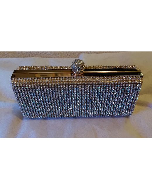 The bag is made of high-quality material with a beautiful diamante pattern that is sure to catch everyone's eye. It has a top handle for easy carrying and a snap closure to keep your belongings safe.