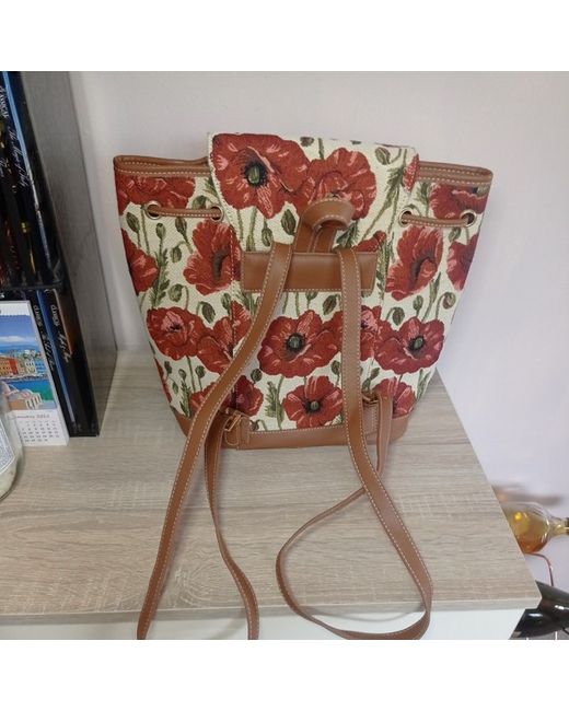 This Signare backpack, featuring a vibrant red poppy design, is a stylish accessory for women. Made from polyester, this new item offers a practical and fashionable option for carrying essentials. Perfect for everyday use, this backpack combines functionality with a touch of floral elegance.
