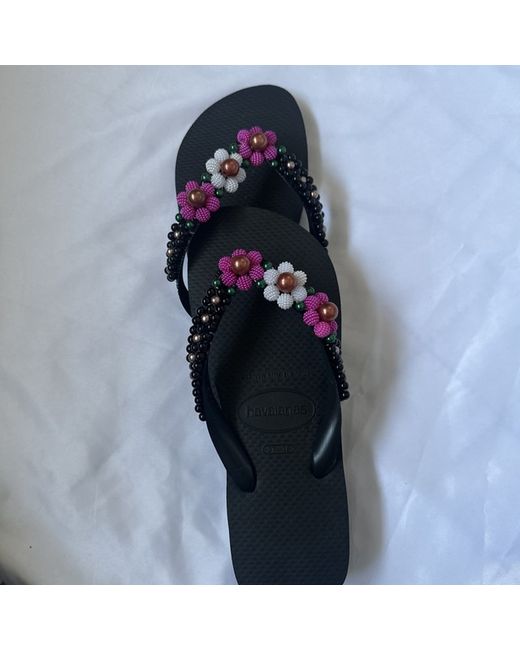 Step into comfort and style with these Havaianas flip flops, perfect for those casual, sunny days. They come in a classic black colour, accented with an appealing floral theme, making them a versatile choice for any wardrobe. The durable rubber upper and insole material ensure a comfortable fit that's ready to tackle any spring or summer adventure. With a size 6 UK fit, these sandals are designed for women who appreciate a personalised touch. The flat heel style keeps your feet at ease, while the customisable feature allows for a unique addition to your footwear collection. Made in Brazil, these flip flops are a testament to quality and playful design.