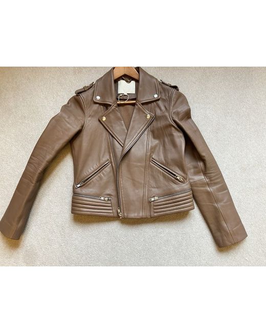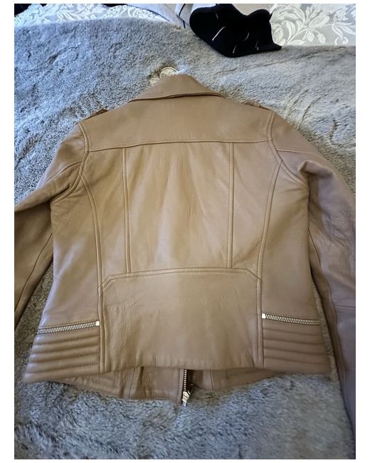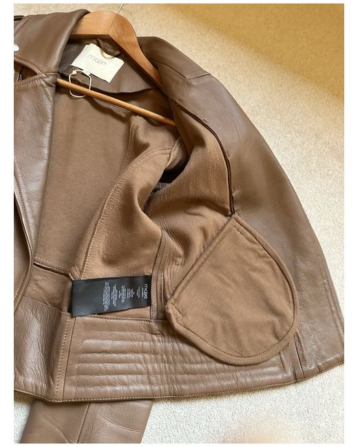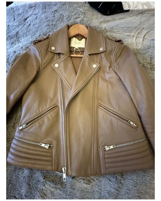 Maje lambs leather jacket in pristine condition. Worn only for a few minutes in a photo shoot. Lovely cappuccino brown color. EU38/UK10 £459 on line only in black…no offers please Can fit nicely size 8 as well with a bit more room. Happy to answer if you have any questions