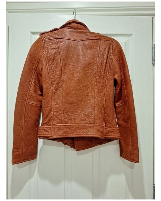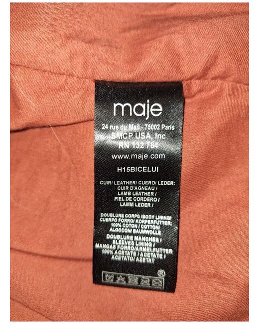 Maje tan leather jacket with belt and side zip pockets. The tag fell off, but the jacket has never been worn.