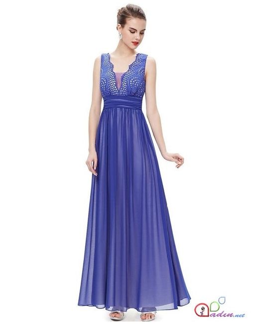 This stunning Ever Pretty evening dress in a gorgeous shade of sapphire blue is perfect for those special occasions. The dress features a double V-neckline, sleeveless design, and a flattering A-line silhouette.