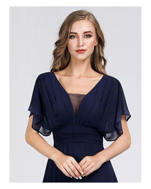 The dress features a beautiful V-neckline and short flowing sleeves, adding an elegant touch to the overall look. The delicate hem and high waist make this A-line dress a flattering choice for any body type.
