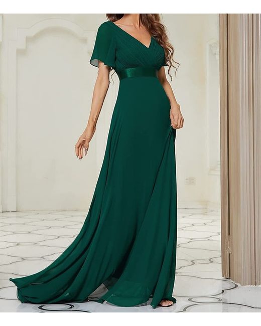 RRP 89.99 Ever Pretty short flutter sleeve v neck chiffon long evening dress