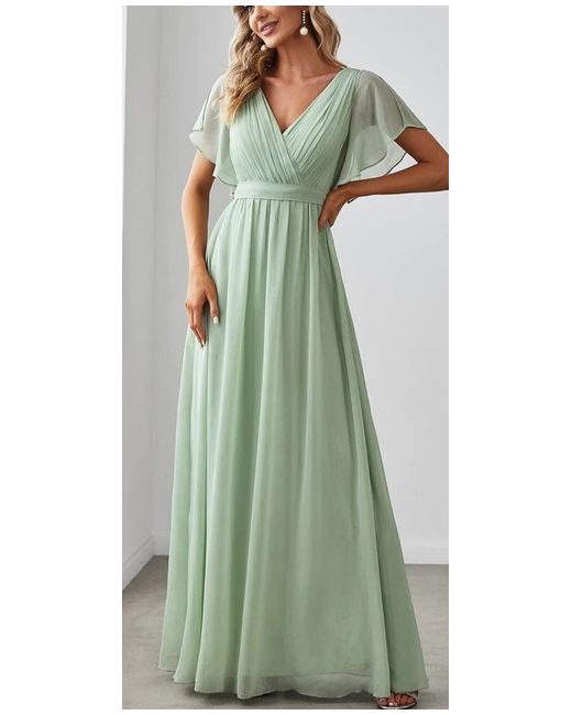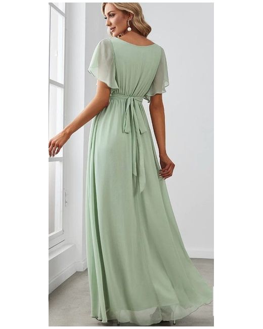 ever pretty dress size 16 celedon colour. perfect condition, never worn. (only tried on once) tags still on. amazing spring /summer colour, in a very light soft sage. the fabric is light and floaty the skirt is double layed and hangs perfectly. selling only becuse i missed the return time, and the v neck was to revealing for my bridesmaids taste, and she chose a different dress from same suppier. great buy for anyone wanting that special occasion dress to wow !