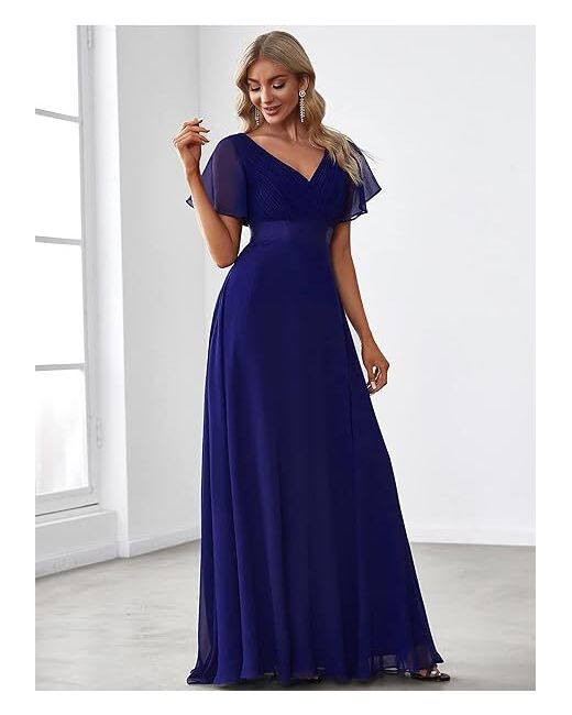 The dress is made from high-quality polyester and chiffon fabric, with a royal blue colour that is sure to turn heads. The dress has a v-neckline and zip closure, making it easy to put on and take off.