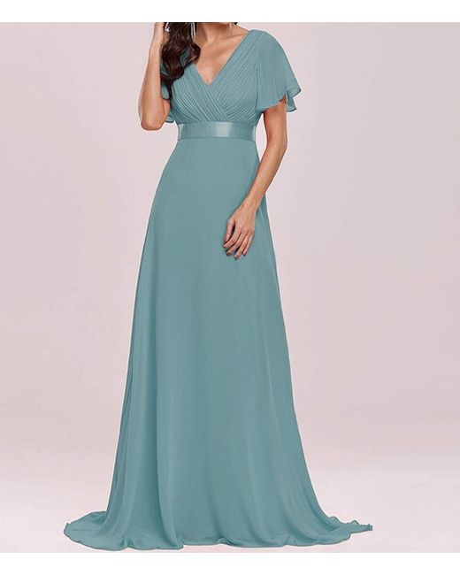 Women's Double V-Neck Short Flutter Sleeves Chiffon Long Dress UK 16