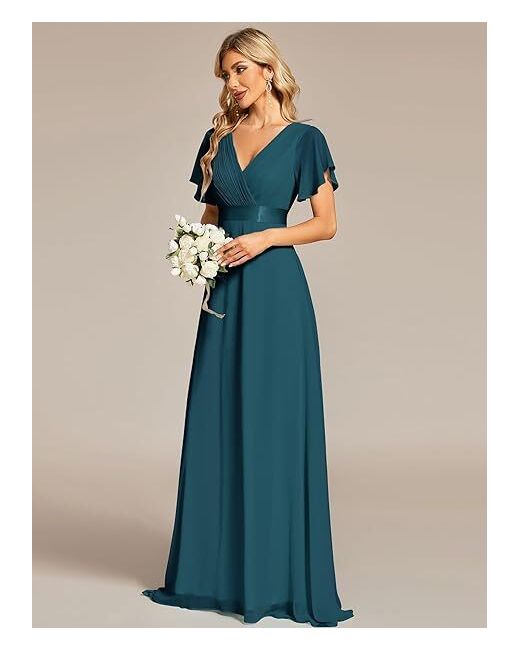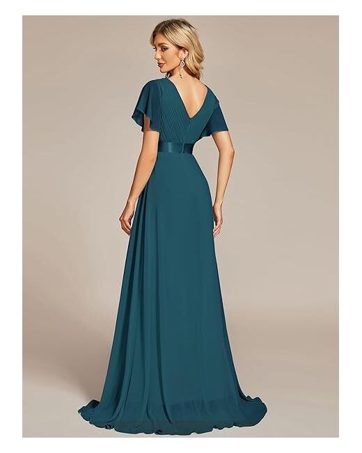 The teal chiffon fabric and A-line style are perfect for any formal occasion. This dress is made from 100% polyester and should be hand washed only. It has a long dress length and will make you feel confident and beautiful.