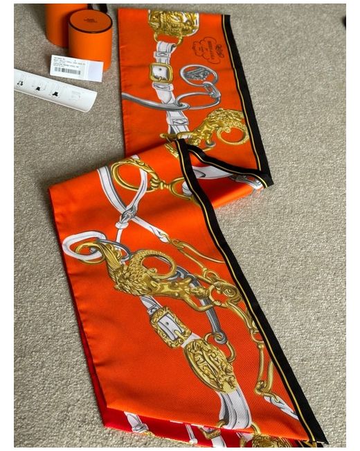 Two Matching Twilly Scarfs TWILLY THE POCKET CF ORANGE/SABLE