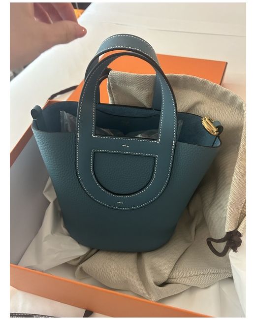 This Hermès In The Loop 18 Bag is a must-have for any fashion-forward woman. The stunning blue jean exterior colour is made from high-quality leather, ensuring durability and style. The top handle bag style is perfect for everyday use, and the spacious interior allows for easy organisation of all your essentials. The brand speaks for itself, with Hermès being a well-known name in the fashion industry. This bag is a great addition to any collection and is sure to turn heads. Whether you're going to work or out on the town, this bag is the perfect accessory to complete any outfit.