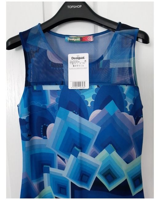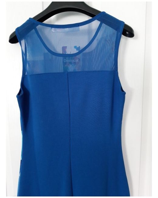 Embrace the summer vibe with the Desigual Blue Geometric Pencil Dress, a stylish blend of comfort and sophistication. This knee-length dress, crafted from soft viscose jersey fabric, offers a flattering fit for any casual or cocktail occasion. The chic sleeveless design paired with a classic round neckline makes it an ideal choice for travellers and party-goers alike. The dress features an eye-catching blue geometric pattern that stands out in any setting, ensuring you make a statement without saying a word. It's machine washable for easy care, and made in Spain.