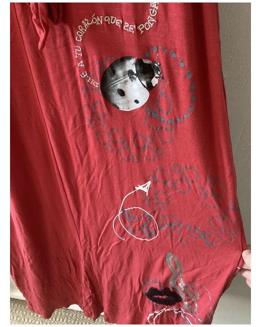 The Red Desigual Dress is a stylish and versatile option for casual occasions during the summer and spring seasons. This long, sleeveless dress features a flattering V-neckline and is made from a comfortable viscose and cotton blend material. The dress is adorned with embroidered accents, adding a touch of flair to the vibrant red colour. Easy to care for with machine washable instructions, this size L but will fit size 14 dress from the reputable brand Desigual is a must-have addition to any woman's wardrobe.