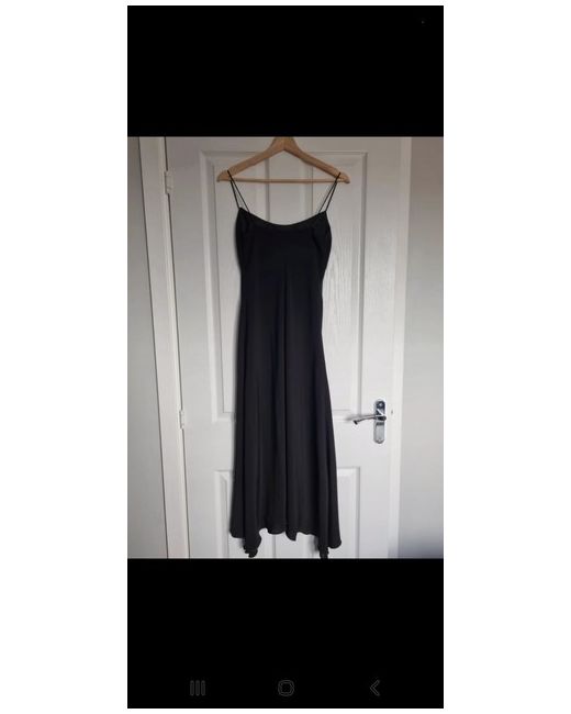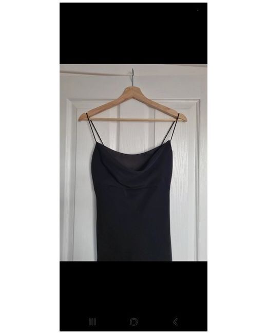 This new Debut dress is a sophisticated choice for a party or cocktail event. It features a cowl neck, strappy sleeves, and a flattering A-line silhouette in a classic black color. Made of satin polyester fabric, this midi dress has a pullover closure and is a size 8. The dress is brand new with tags, making it a stylish and elegant addition to any woman's wardrobe.