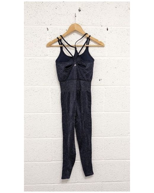 Women's Blue Seamless Lurex Playsuit Glitter Workout Gym S New