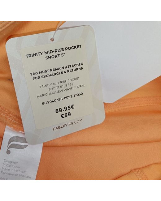 Fabletics Orange 'Trinity Mid-Rise Pocket' Shorts BNWT. Size UK 6 8.