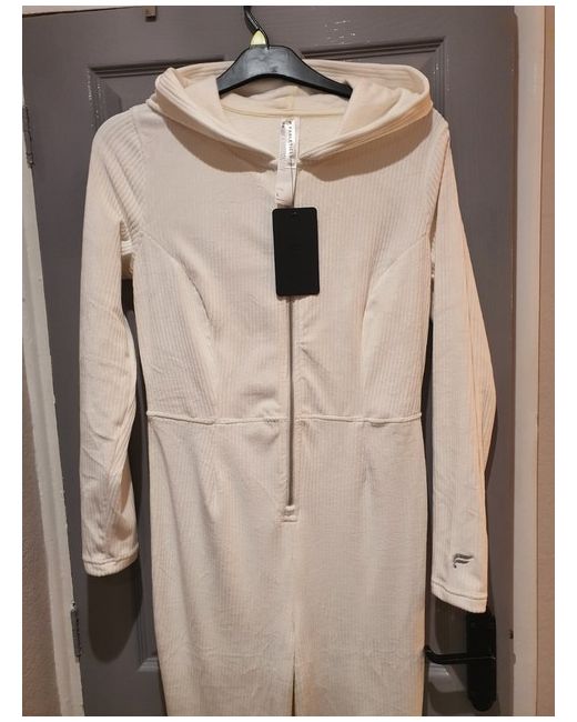 Onesie / jumpsuit Super soft plush Hooded Fits Tall Size L Colour: Creamy White Bone