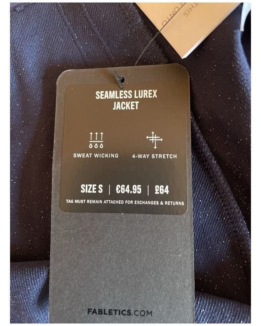Women’s Fabletics Seamless Lurex Jacket Blue Sparkle Size S. Condition is New with tags. Dispatched with Evri Tracked.