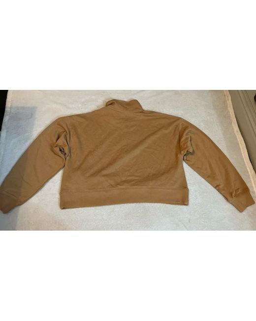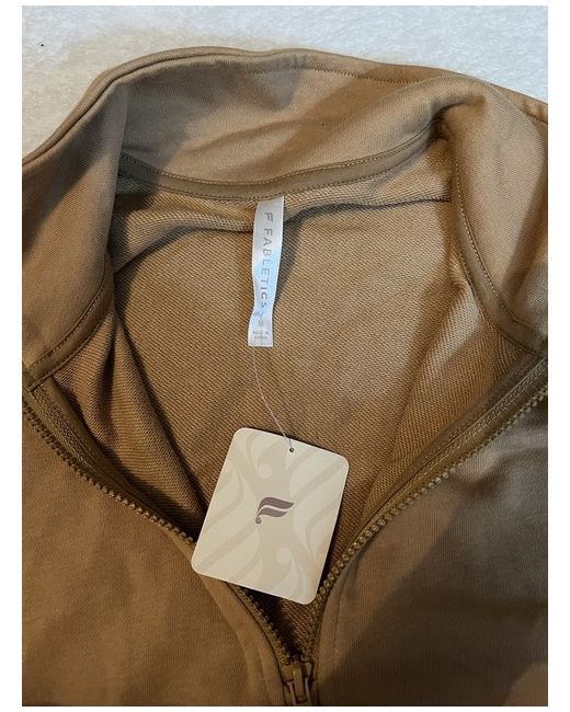 Women's Fabletics Half Zip Sweatshirt in a ‘quicksand’ colour. Crafted with a blend of Polyester and Cotton, this pullover style Jumper features a High Neckline and Long Sleeves, making it the perfect addition to your wardrobe. This is a brand new jumper still with tags attached and in original packaging. The Half Zip design adds a touch of edgy style, it is not as long as regular jumpers, therefore depending on height, maybe a cropped jumper on most. The current retail price for this jumper is £74 as a non member of Fabletics. Perfect for any occasion, this Jumper is made from high-quality materials, ensuring that it is both comfortable and durable.