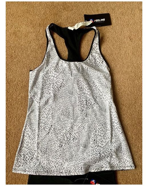 Fabletics 2-piece set co-ordinated set. Fitted vest with contrast black and white design. It a (US) size small but can easily fit a standard UK 12.