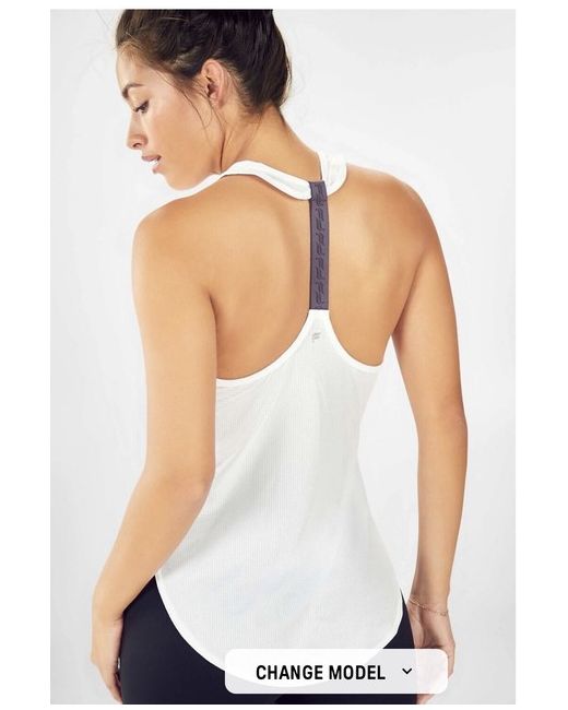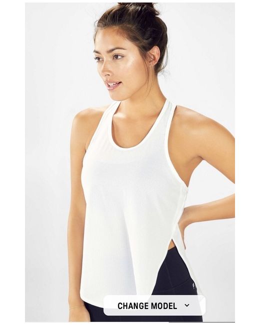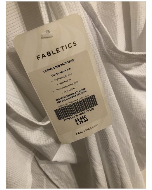 This Fabletics workout tank features a stylish scoop neckline and sleeveless design, with a pullover closure for easy wear. The tank is made from a comfortable blend of polyester and elastane, and is machine washable for easy care. The white colour and square pattern add a touch of elegance to this activewear top, which is perfect for women in size 16-18. The tank is designed to provide a regular fit and features a compression area in the back. Ideal for any occasion, this Fabletics tank is perfect for activewear enthusiasts who want to look and feel great during their workout. Made in China, this top is a must-have for any woman's activewear collection.